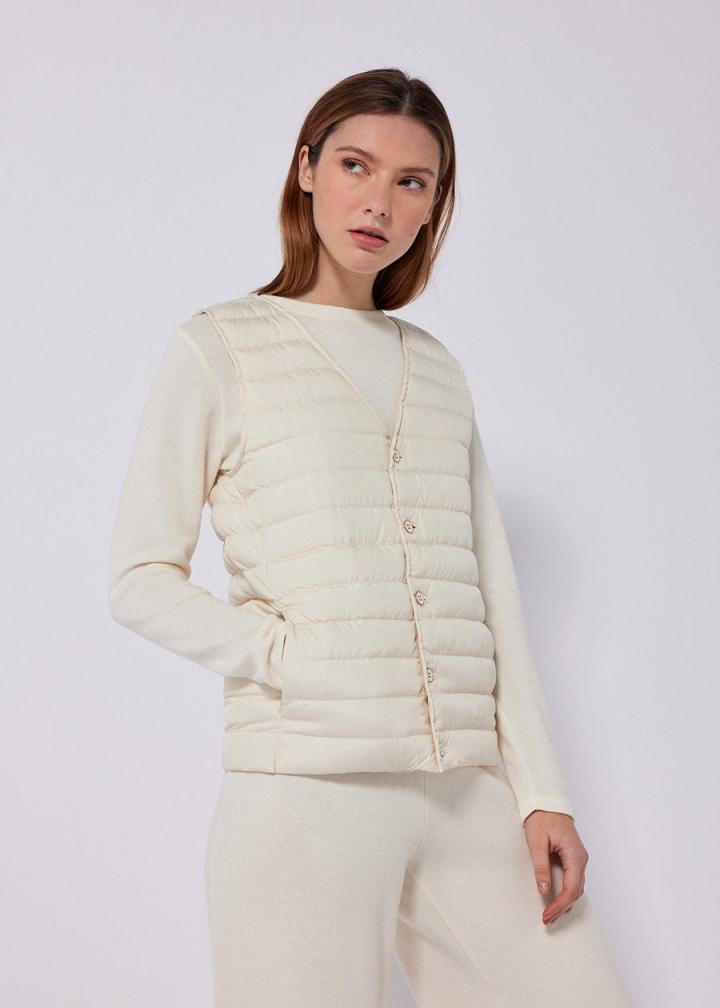 Le gilet d’intérieur Sofia est la version sans manches de la doudoune légère Alva. Avec son col en V et ses finitions si féminines, l’effet douceur et cocooning sera décuplé. Vous pourrez le porter sur un pull fin à manches longues, ou sur votre vêtement ou lingerie de nuit. • Déperlant, respirant • Col V en biais • Fermeture par 5 boutons • Badge Pyrenex sous la nuque ton sur ton